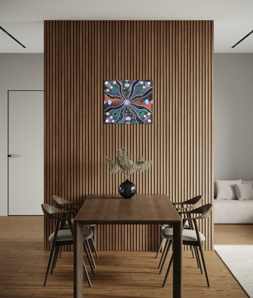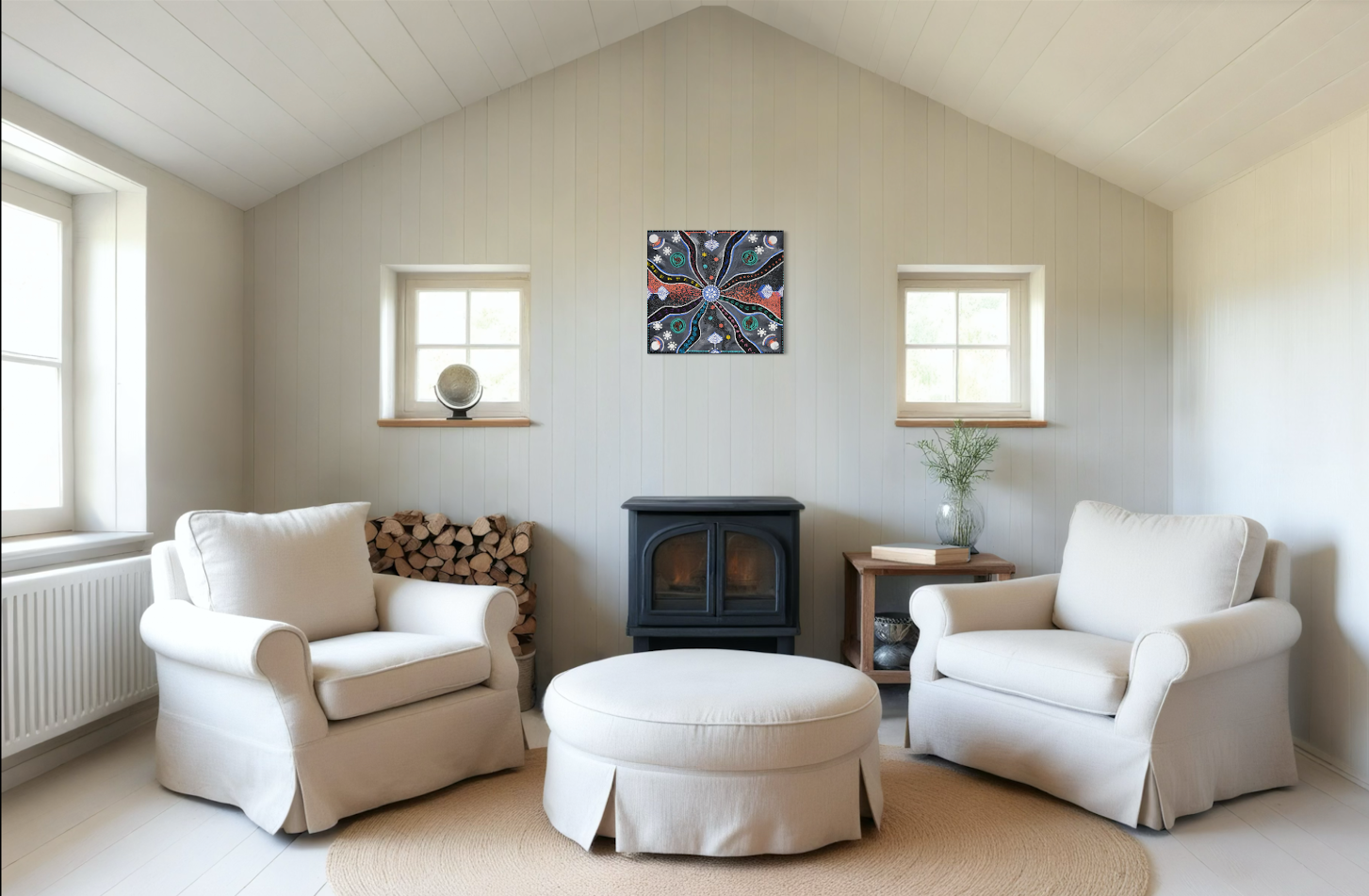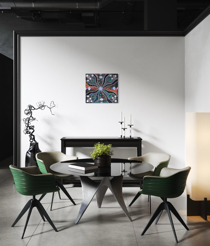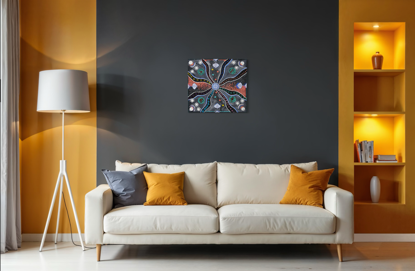 STORY BEHIND THE WORK: I often think to myself that I am the luckiest person in the world to have a culture so beautiful and rich. Our connection to all things is so spiritual. In the whispers from the trees and vibrations from the ground I can feel my Ancestors calling me home.