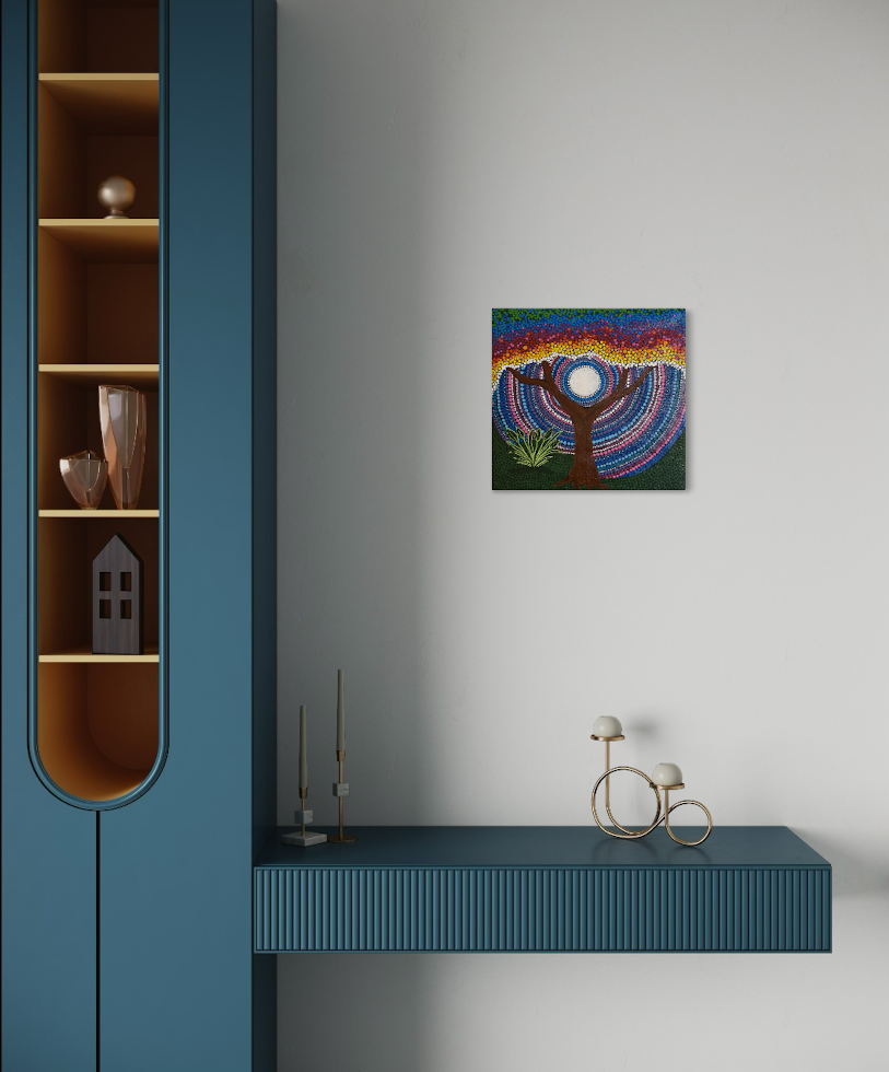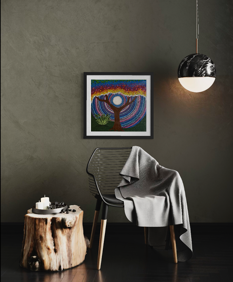 THE STORY BEHIND THE PAINTING: Celebrates love lived freely and without apology. Through bold colours and textured layers, it honours the beauty of queer connection, the strength of chosen family, and the joy of living authentically. This work is both resistance and celebration — a reminder that love, in all its forms, is powerful and healing.