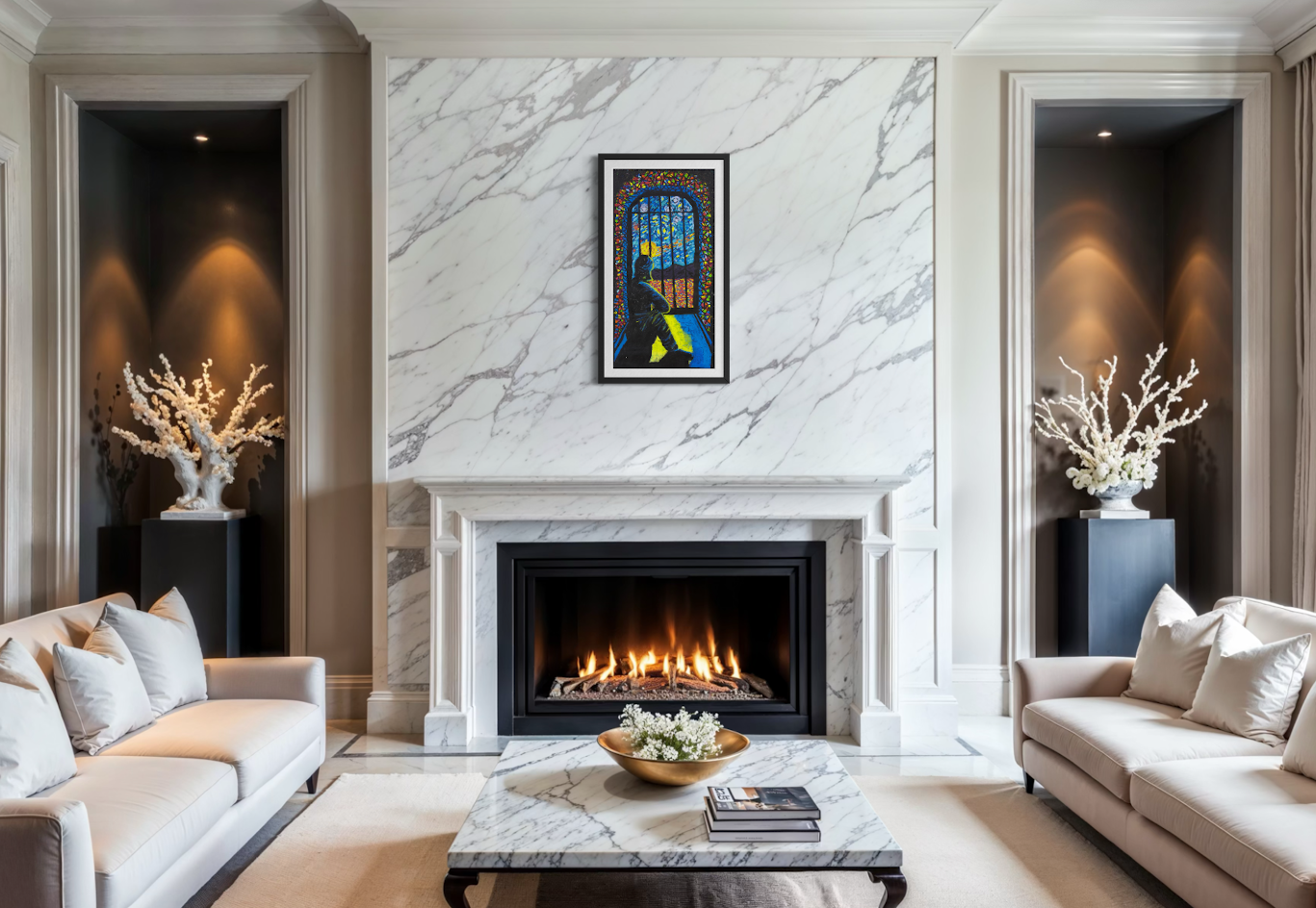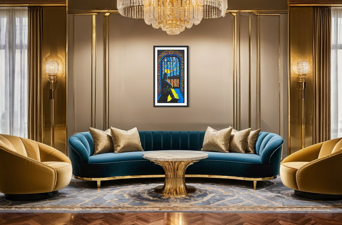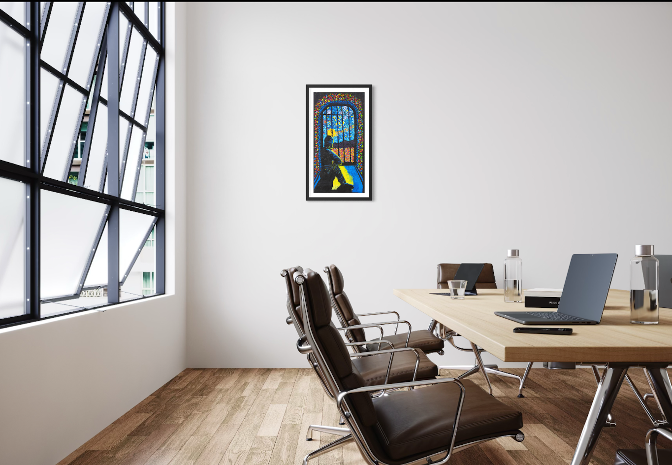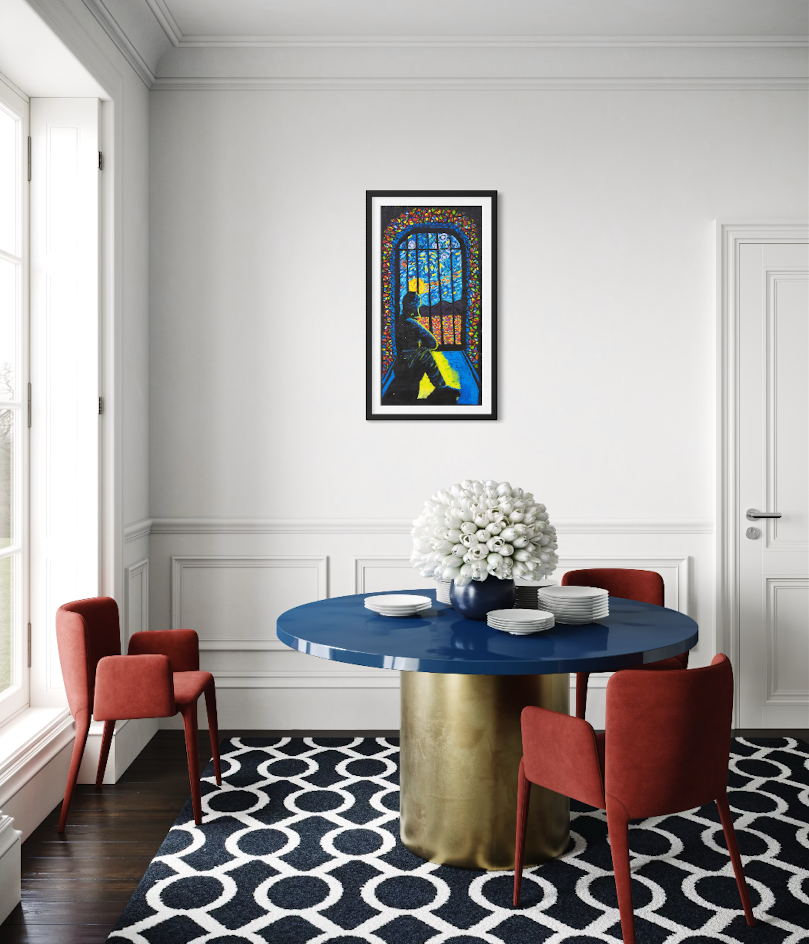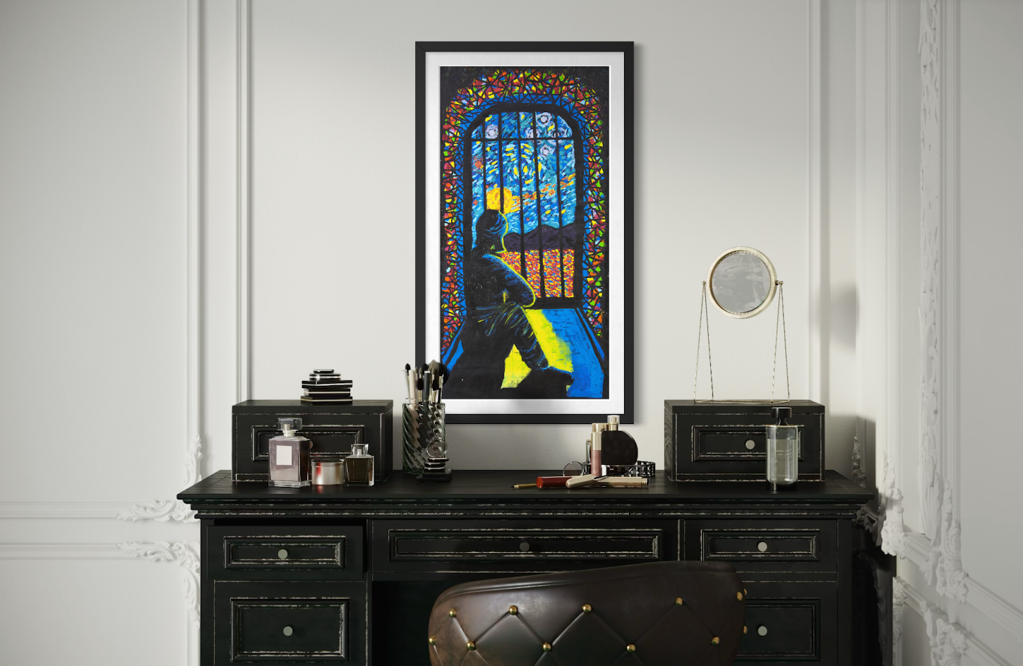 THE STORY BEHIND THE ARTWORK: I sit alone in my cell, looking outside at the sky, the landscape and sometimes the stars. I used to think I was alone. But now I tell myself my cell is my own place of worship. It can be whatever I want it to be. I don’t need to be in a cell to be locked up. When I was in the community, in my mind I was already inside a cell. Now my mind is clear, all the colours create beauty and peace. I feel confident about my path now because I am walking with hope and clarity.